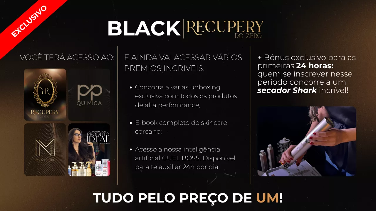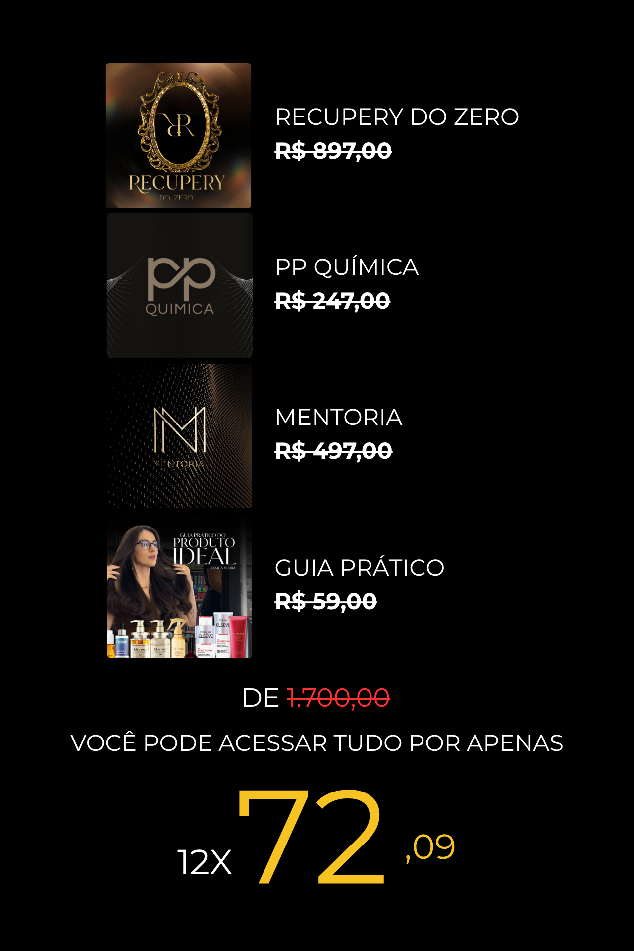 Para mulheres que querem conquistar cabelos bonitos, saudáveis e fáceis de cuidar, sem depender de tratamentos caros ou rotinas complicadas. Se você está cansada de comprar e usar produtos de forma aleatória e que não te dão resultados duradouros, o Método RECUPERY é para você!