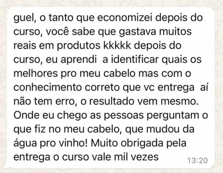 Você vai aprender a cuidar dos seus cabelos de forma autônoma, sem depender de salões ou gastar com produtos aleatórios.